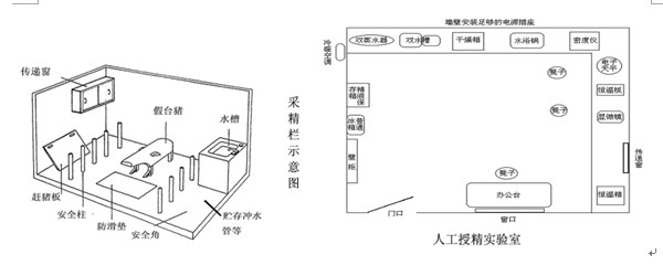 4、人工授精站和豬場內人工授精實驗室設計與布局圖。